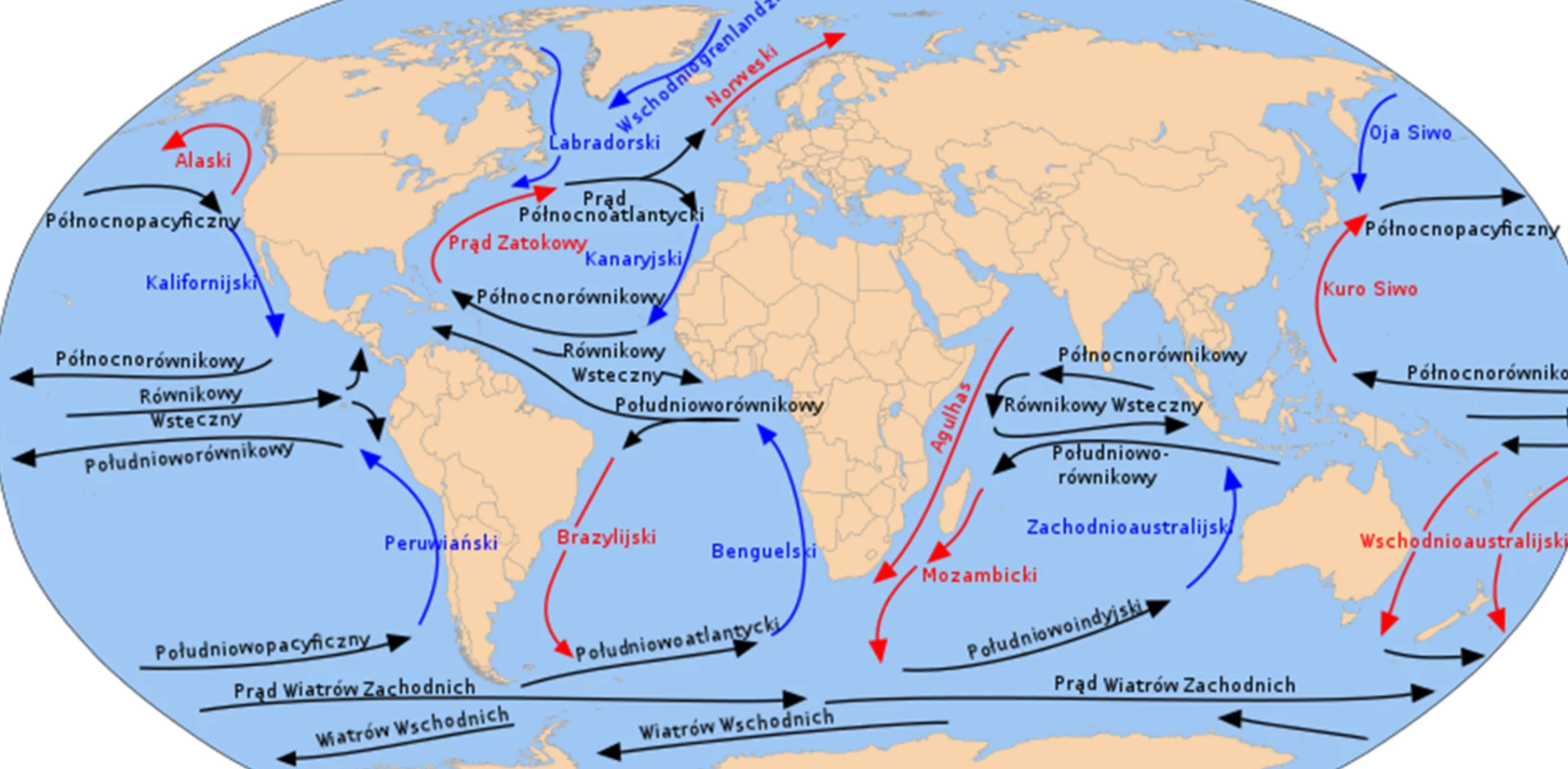 Prądy morskie, takie jak Golfsztrom, to skomplikowane i dynamiczne zjawiska napędzane przez różnice temperatur, zasolenia, głębokości oraz ruchy obrotowe Ziemi. Golfsztrom stanowi ciepły prąd, płynący od wschodniego wybrzeża Stanów Zjednoczonych na północny wschód w kierunku Europy, przynosząc ciepło i stabilność klimatyczną.