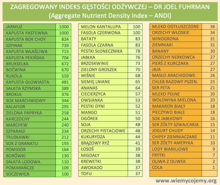Dzięki diecie opartej na pokarmach o niskiej gęstości kalorycznej – nie przejadamy się, szybciej czujemy się syci oraz dostarczamy organizmowi znacznie więcej wartości odżywczych. W większości przypadków, najgęstsze odżywczo są produkty o najmniejszej gęstości energetycznej (szczególnie zielone warzywa liściaste oraz surowe owoce).