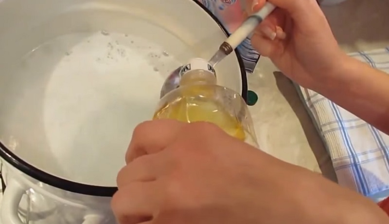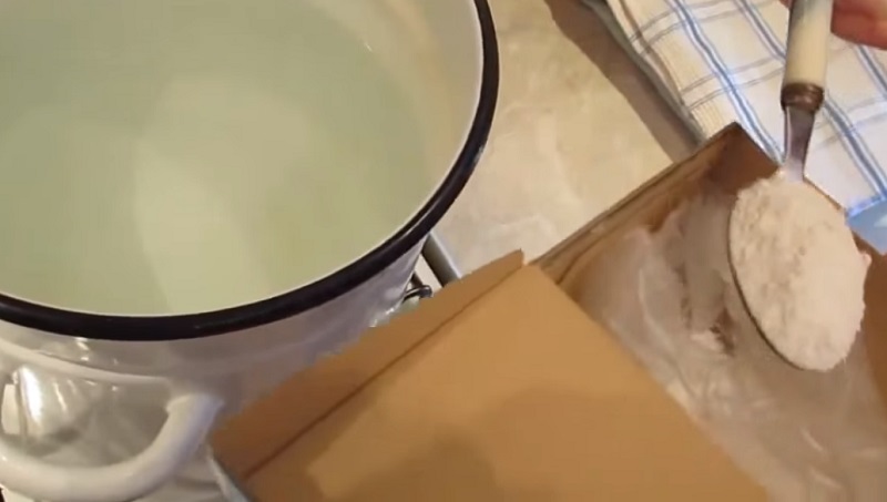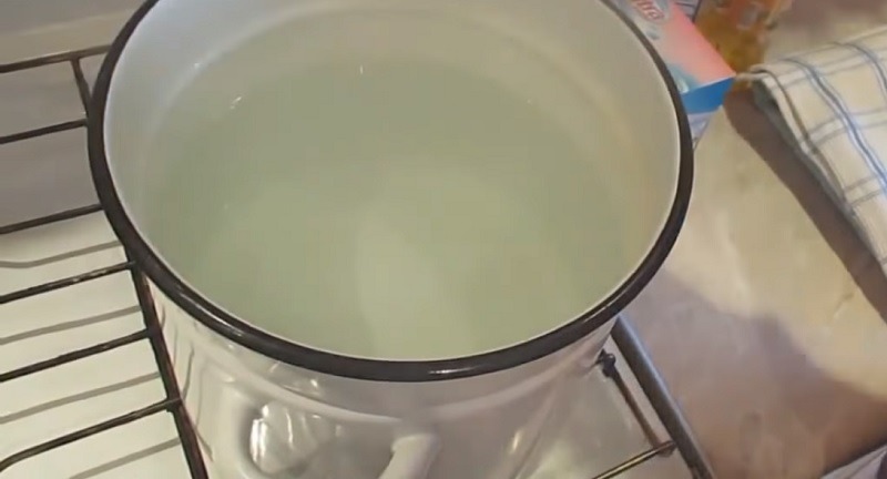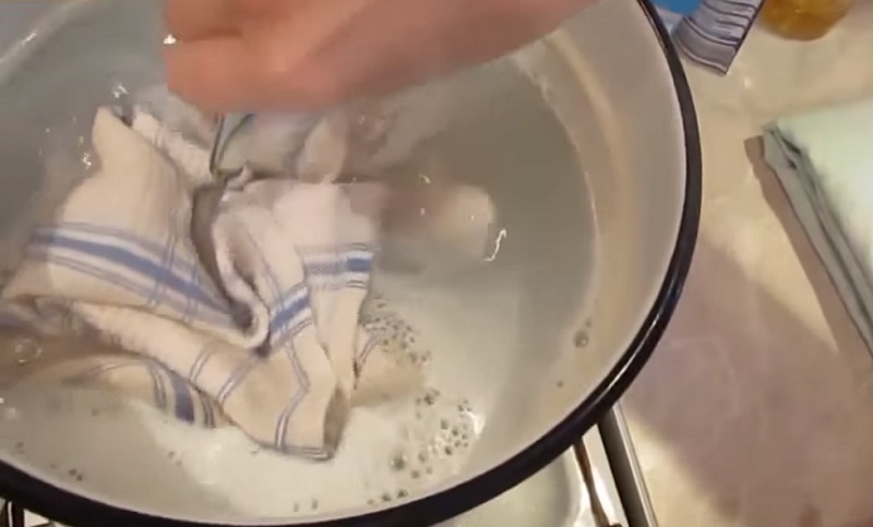 Wymieszaj wszystkie składniki. Umieść ręczniki w tym roztworze. Wyłącz ogień. Przykryj garnek.
